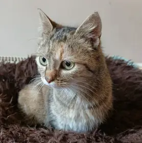Cute, kočička, narozená cca 2024-5, (ev. číslo 2026/03/01), KASTROVANÁ, test FIV/FeLV negativní, č. mikročipu ....... 4 kočičky (3 holky a 1 kluka) jsme přijali z Oldřiše. Majitelka jim zemřela a i...