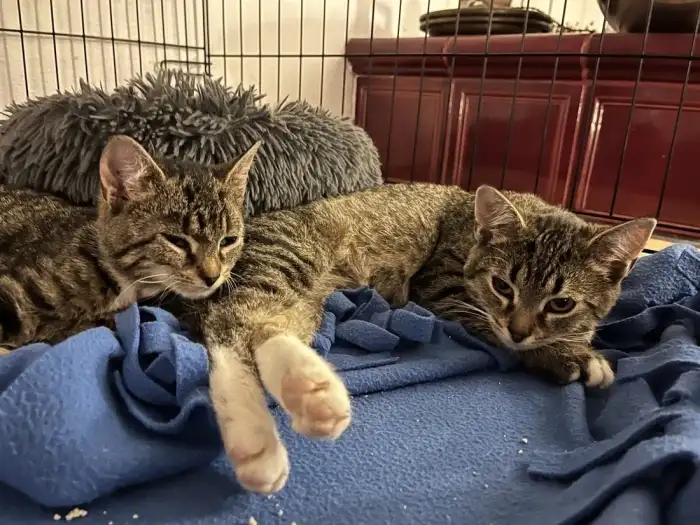 Julča (narozena asi 2023) je drobnější šedá kočička, kterou jsme v lednu přijali spolu s několika dalšími kočkami.