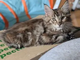 Prodám Mainskou mývalí kočku - Chovatelská stanice Windy&Izzy nabízí k rezervaci nádherná, typově velmi povedená mainská mývalí koťátka s průkazem původu. K dispozici: 🐾 1 kocourek 🐾 4 kočičky K...
