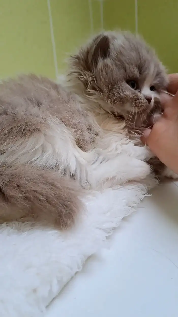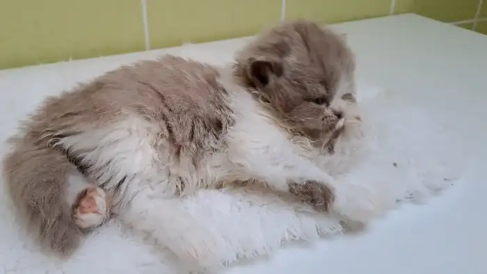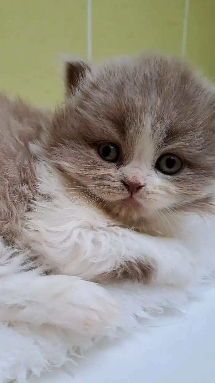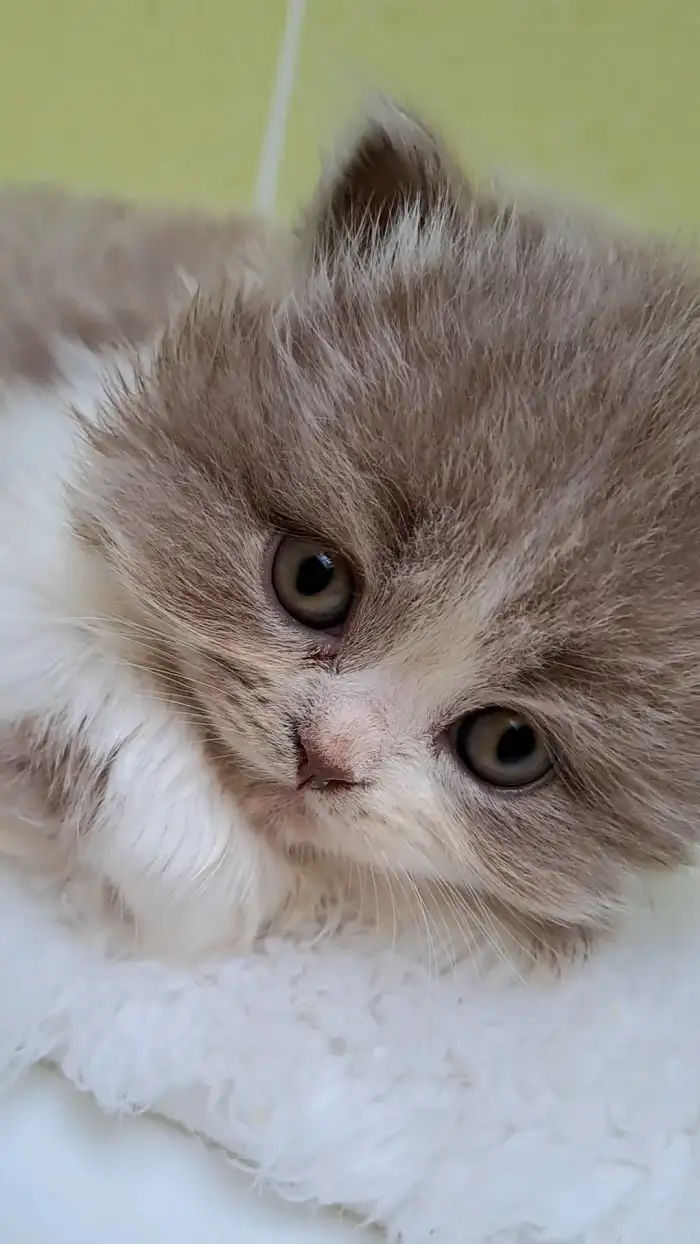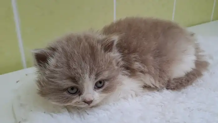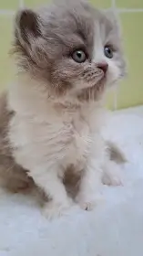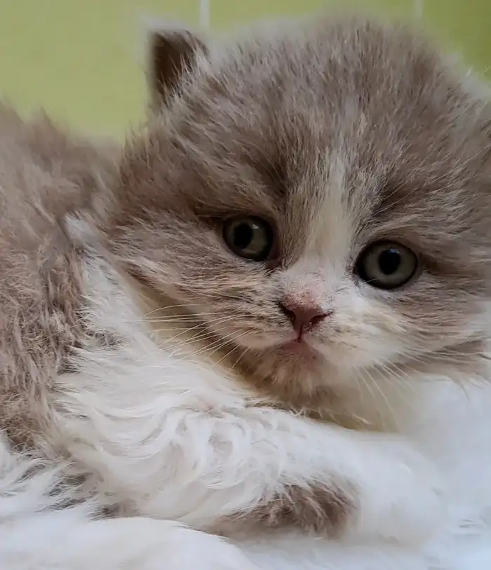 Tato nadýchaná britská dlouhosrstá kočička se narodila 22.3.2026 a je v barvě lilová s bílou tedy lilová bikolor.