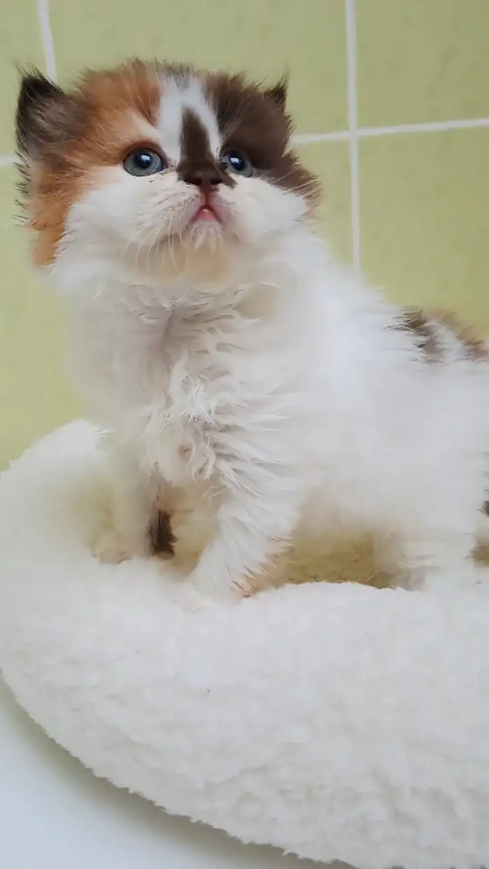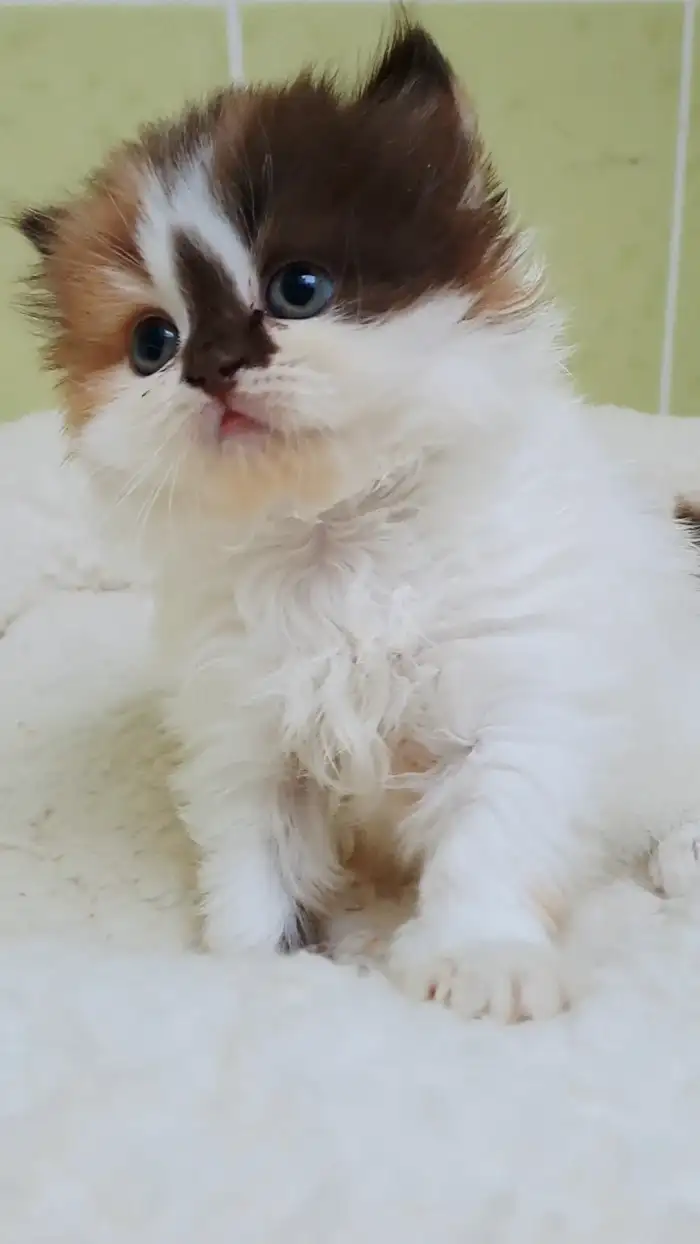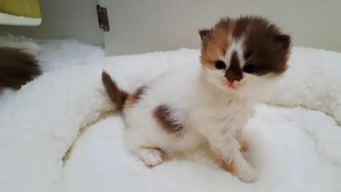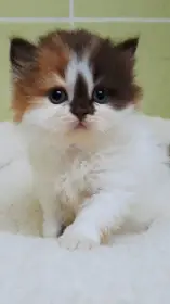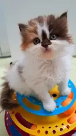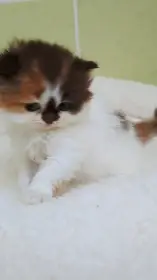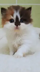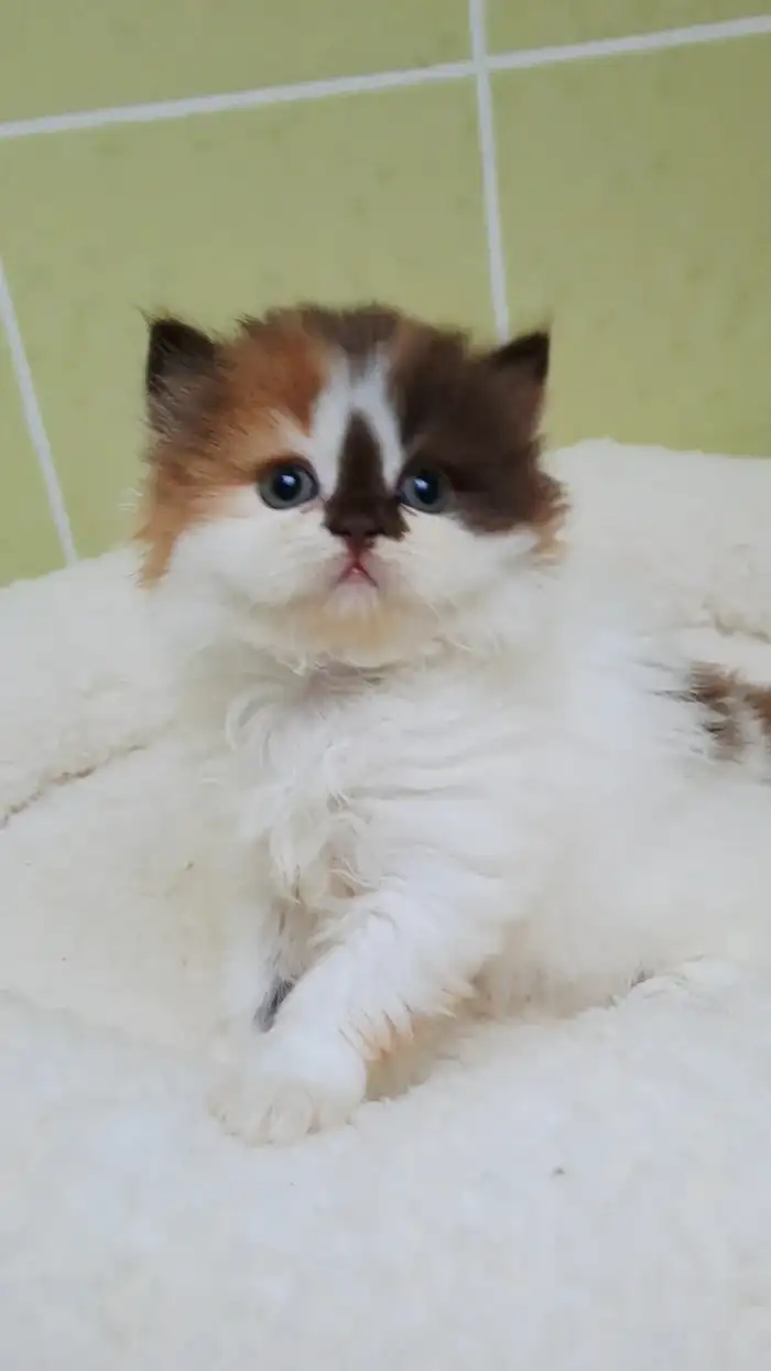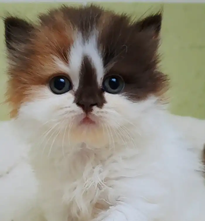 Tato nadýchaná britská dlouhosrstá kočička se narodila 22.3.2026 a je v barvě čokoládově želvovinová s bílou Libuška má úžasně zbarvenou hlavičku s překrásným plamínkem na nosánku. Převaha bílé barvy a barevný ocásek - to je atraktivní zbarvení tzv. čokoládově želvovinová van.