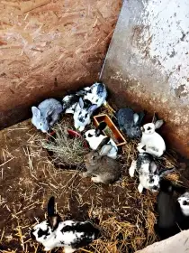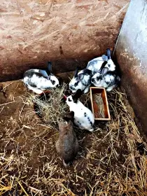 Prodám Meklenburského strakáče červeného - Nabízím samce a samičku králíků. Jedná se o 6 měs. křížence středních plemen. Cena: 350Kč/ks