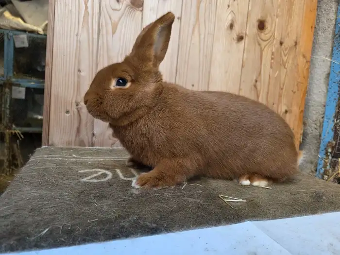 Prodám Novozélandského červeného (Nč) - samce a samice 04/2025 z jednoho vrhu, po oceněných rodičích s PP, očkované mor a myx, netetované