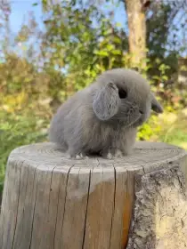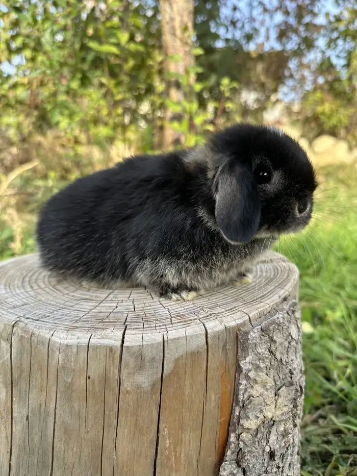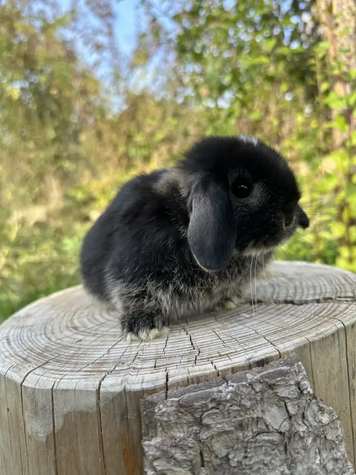 Prodám Zakrslého (Z) - Nabízím zakrslé králíčky s delší srstí, matka lvíček, otec kříženec, k dispozici černá samička a dvě samičky a sameček bílé s kalifornskou kresbou. Mláďata jsou klidně zvídavé p...