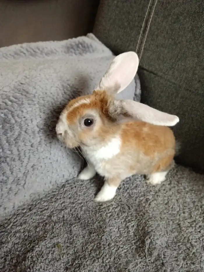 Zakrslý králík beránek bílý s hnědými znaky - holka