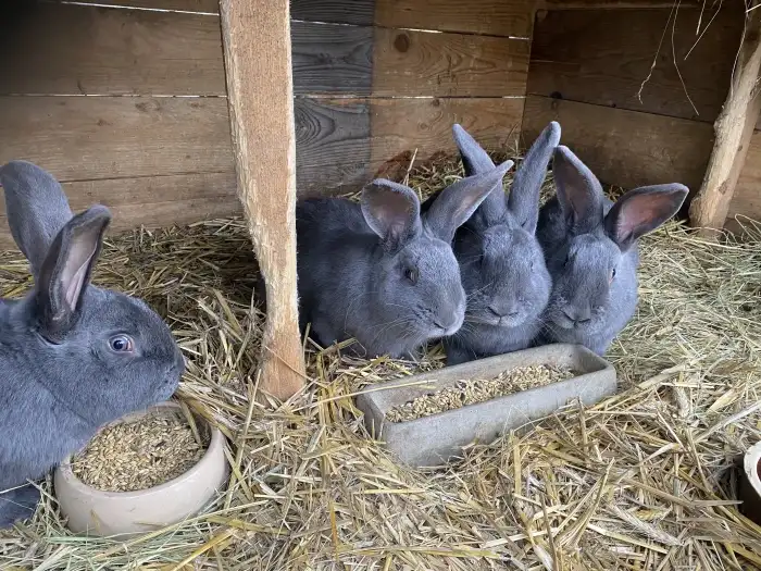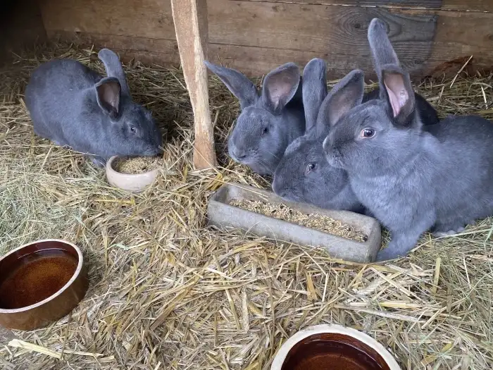 Prodám Moravského modrého (Mm) - Prodám králíky Moravské modré, stáři 7 měsíců cena 700,- /ks samci i samice
