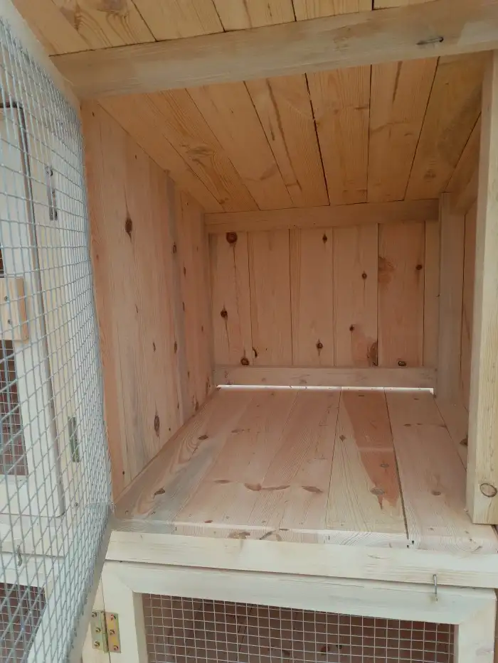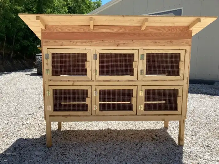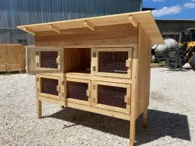Králíkárna je tvořena čtyřmi kotci a je vyrobena z masivní konstrukce z jehličnatých dřevin. Konstrukce je vyrobená z hranolů o rozměru 40 x 60 mm a nohy mají rozměr 60 x 80 mm. Králíkárna je pobita...