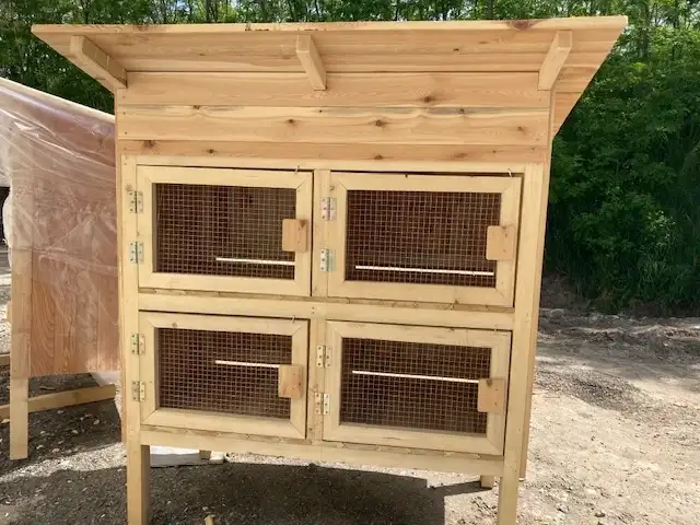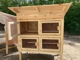 Králíkárna je tvořena šesti kotci a je vyrobena z masivní konstrukce z jehličnatých dřevin. Konstrukce je vyrobená z masivních jehličnatých hranolů o rozměru 40 x 60 mm a nohy mají rozměr 60 x 80 mm....