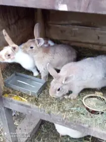 Prodám Burgundského (Bu) - Prodám Bu burgundské králíky 1 samečka a 3 samičky vhodné hned do chovu možno připustit. Cena 400kc.Mozno i králíky na maso