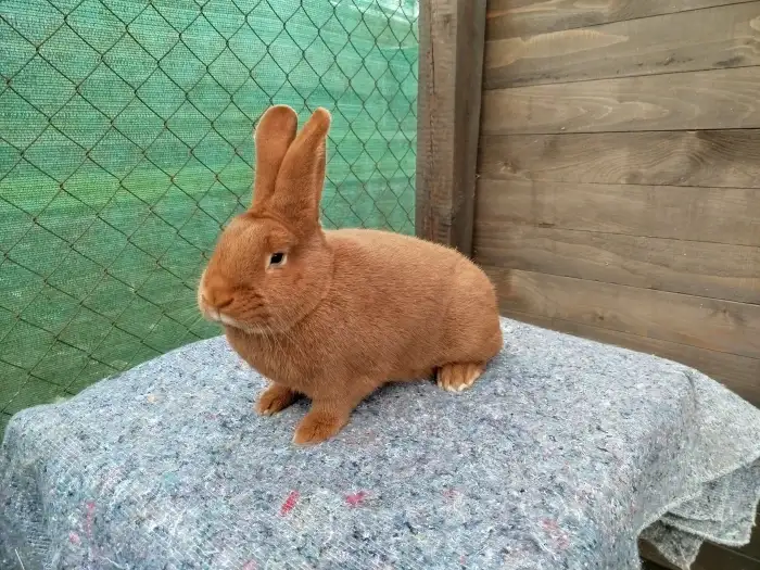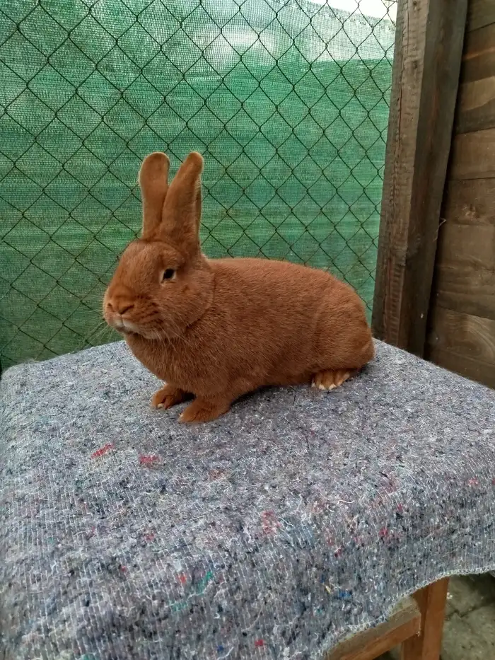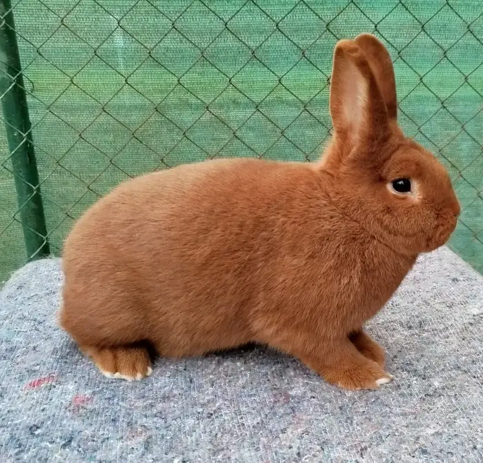 Prodám Novozélandského červeného (Nč) - Volná samička Nč,tetovaná,bodovaná 94,0.Narozená 1.6.25