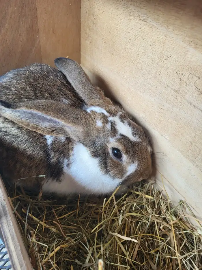 Prodám Českého strakáče (ČS) - Prodám 2 měsíční odstávčata králíků českých strakáčů na dokrmení. Cena 100 Kč za kus.