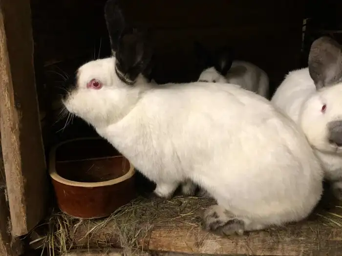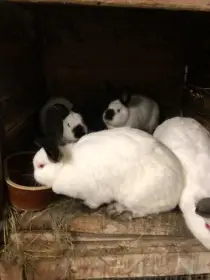 Prodám Kalifornského (Kal) - Nabízím skupinu 1,3 kalifornských králíků, 2 samice loňské, samec a samice predlonsky, nejlépe dohromady, přecházím na registrovaný chov, zvířata jsou zdravá, očkovaná a k...