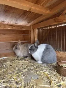 Prodám Zakrslého (Z) - Prodám samici zakrslého králíka, černo-bílá a rezaté bříško, narozená 10/2024. Ruším chov Cena: 250 Kč