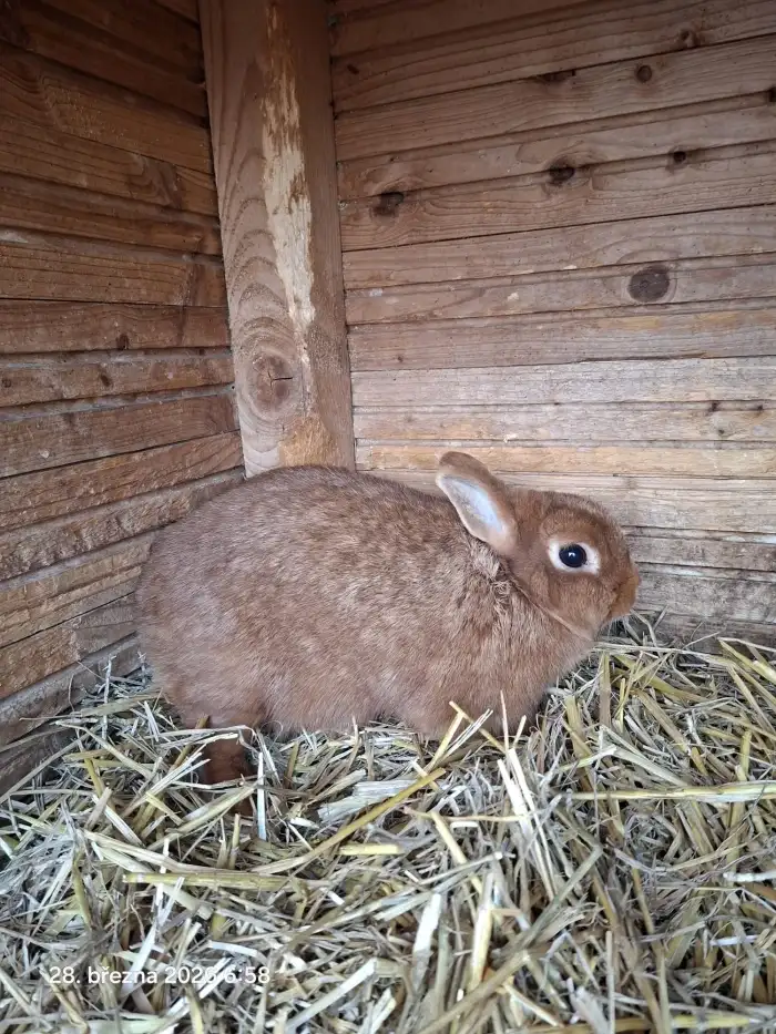 Prodám Zakrslého (Z) - Prodám samici zakrslý králík divoce zbarvený, narozená 4/2025. Ruším chov Váha 1,1kg Jezdim často Prahu, Kutná Hora a jiné mesta. Cena: 250 Kč