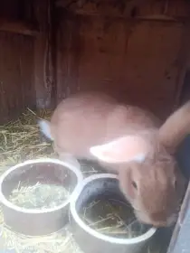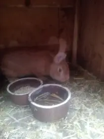 Prodám Burgundského (Bu) - Nabízím k prodeji samce i samice burgundského králíka, narozeni 15.2.2026. Na mazlení i na chov. Jsou už teď poměrně zvyklí na ruce. Krásně žerou a rostou. Na foto je pouz...