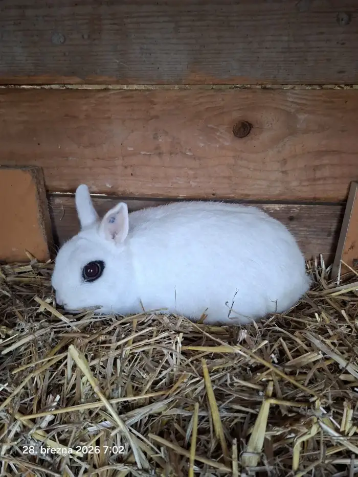Prodám Zakrslého (Z) - Prodám samici zakrslého králíka, černo-bílá a rezaté bříško, narozený 10/2024. Jezdim často Prahu, Kutná Hora a jiné mesta. Ruším chov Cena: 200 Kč