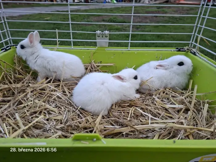 Prodám Zakrslého (Z) - Prodám samici zakrslýho králíka narozený 26.2.2026 Jezdim často Prahu, Kutná Hora a jiné mesta. Cena: 300 Kč