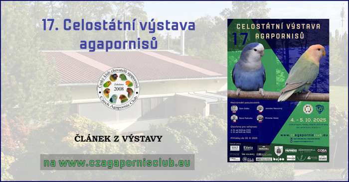 17. Celostátní výstava agapornisů: www.czagapornisclub.eu/index.php/clanky/vystavy-a-zajezdy/459-17-celostatni-vystava-agapornisu