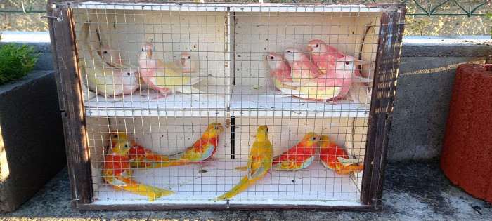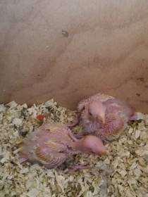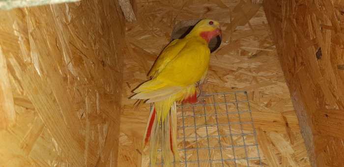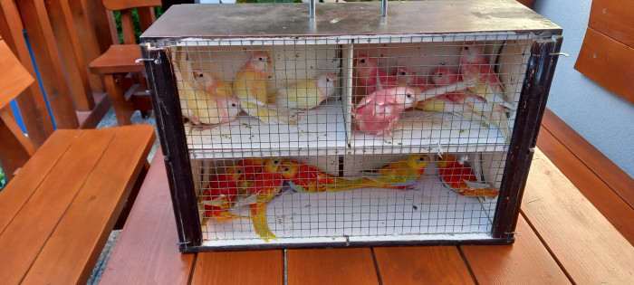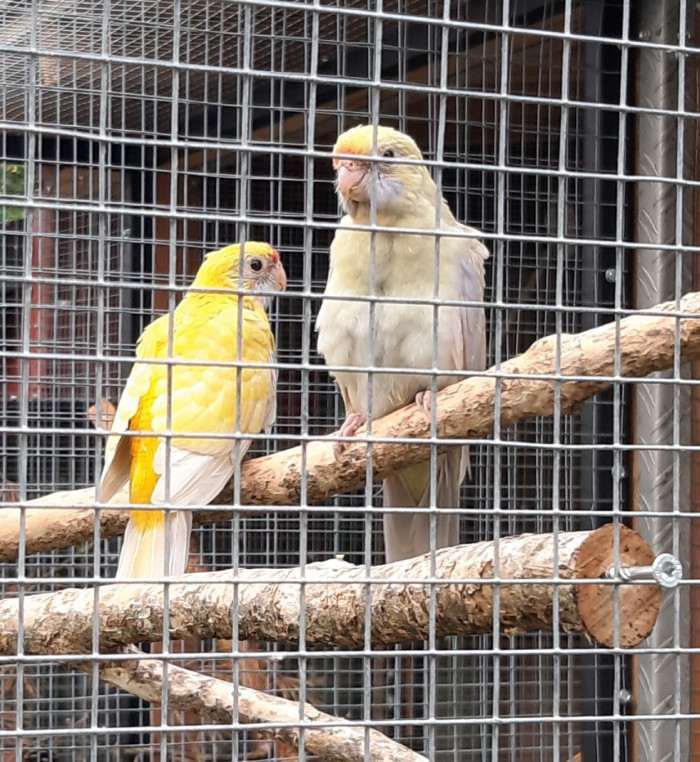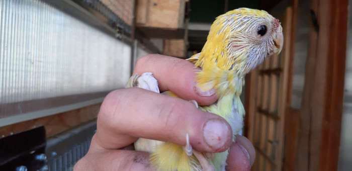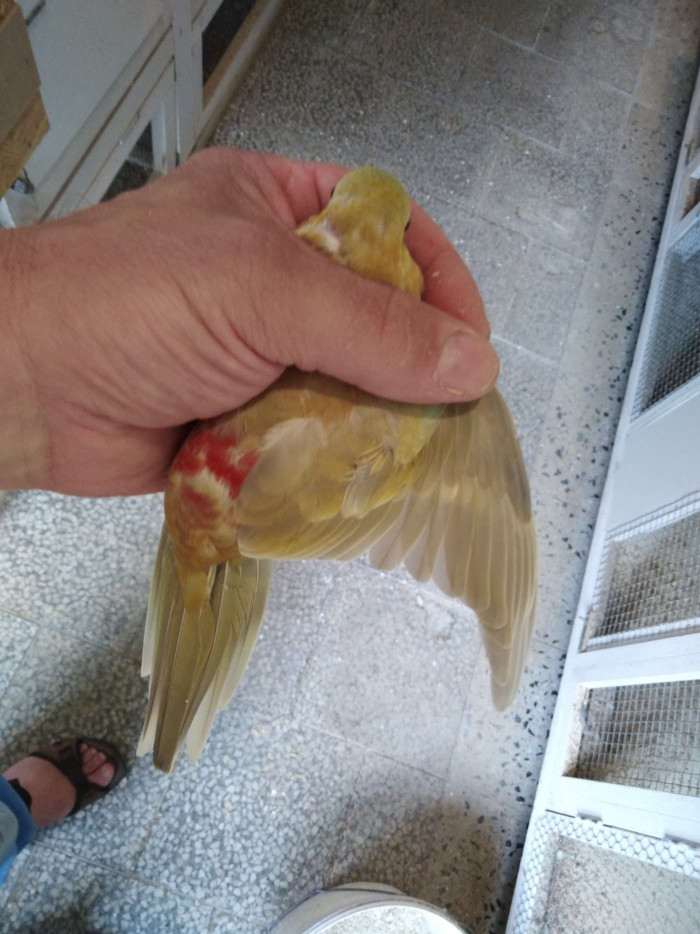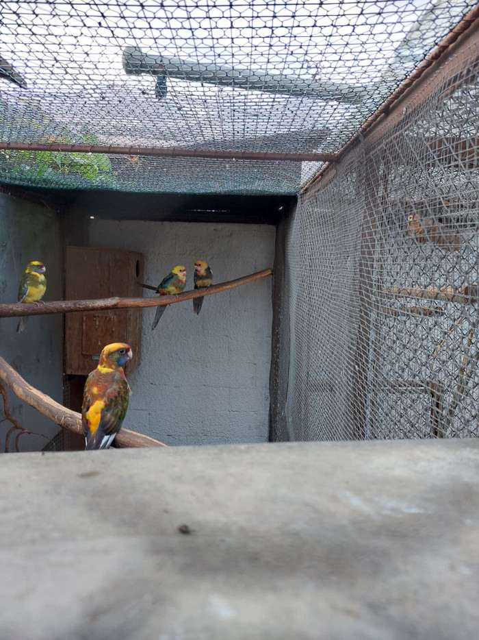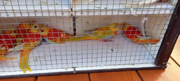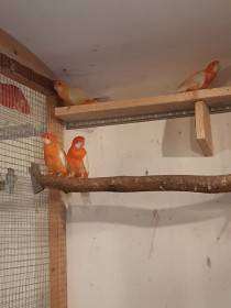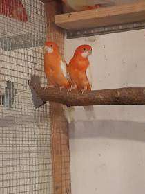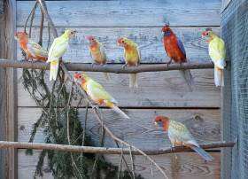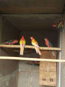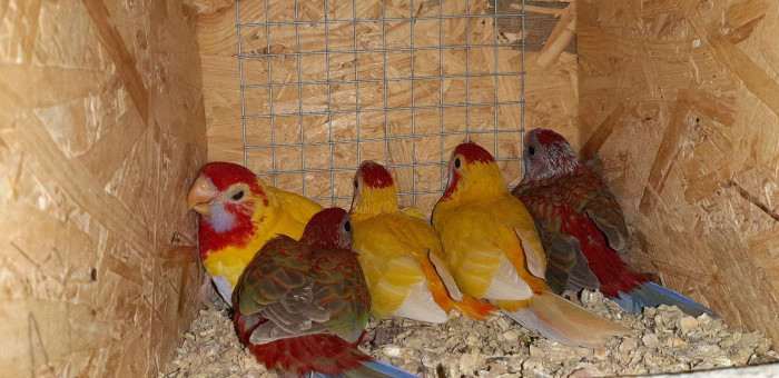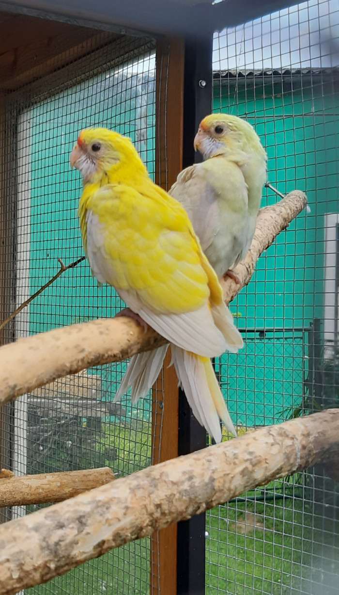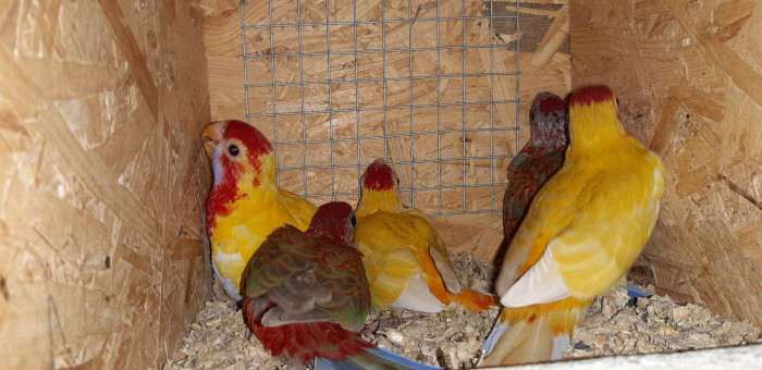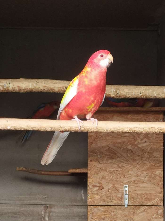 Také už vyletěli, rosela pestrá albino ( skořice) se svým otcem a rubino/modrou.