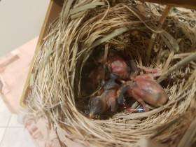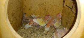 Červenokřídlý/žluté druhé hnízdo, první 4 mladí až na bydlo, druhé tři vejce, dva mladí, jeden zůstal a roste jak s vody.