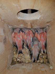 Dobrý den, letos druhé hnízdo Amády zelenomodré ,,FORBESKA¨ . Dnes nakroužkovány 4ks.