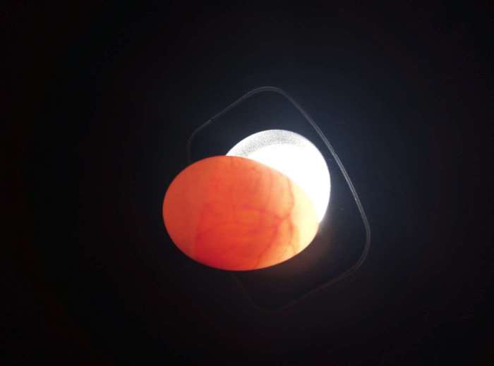 Tak od 7.7. znašala každy deň jedno ,dnes je 28.7. a žadne sa nevyliahlo.Včera som vejce presvicoval sou v tomhle stavu .