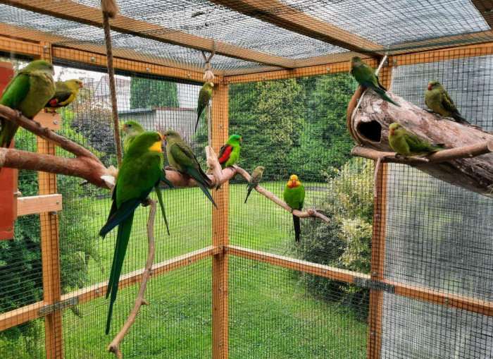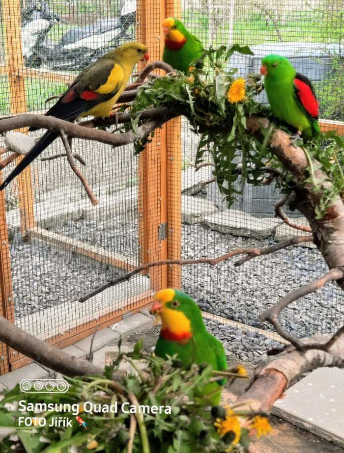 Já chci pro své ptáky, aby měli co nejvíce prostoru, které jsem schopen jim nabídnout, proto volím cestu společné voliéry i za cenu menších odchovů. Jen se držím zásady mít pohromadě ptáky stejného kontinentu.