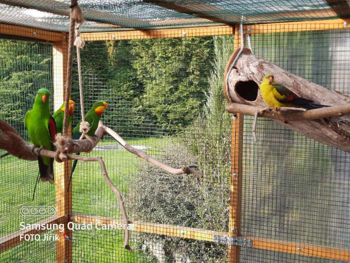 Naprosto souhlasím s Alisterus 23, lépe bych to nenapsal. Mám voliéru 5x3x2m a nyní zvětšuji na 7x3x2m. U stávájící voliéry mám pevné sastřešení 3m další 2m průhledný polykarbonát a proto prodlužuji o dva metry bez zastřešeni pro možnost koupání při dešti. Používal jsem ,, vodní mlhu", ale několikrát prokousli tenké hadičky, tamže proto prodloužení. Vodní mlhu ponechám, ale nad nekrytou částí k níž nebudou mít přístup. Pokud jsou vysoké teploty a neprší je to dobré řešení. Ještě k červenokřídlým - mám 1,0 šestiletý a 0,1 pětiletá. Hnízdí spolehlivě a jsou více plašší než útoční. Ale každý jedinec může být jiný, proto má každý jinou zkušenost.