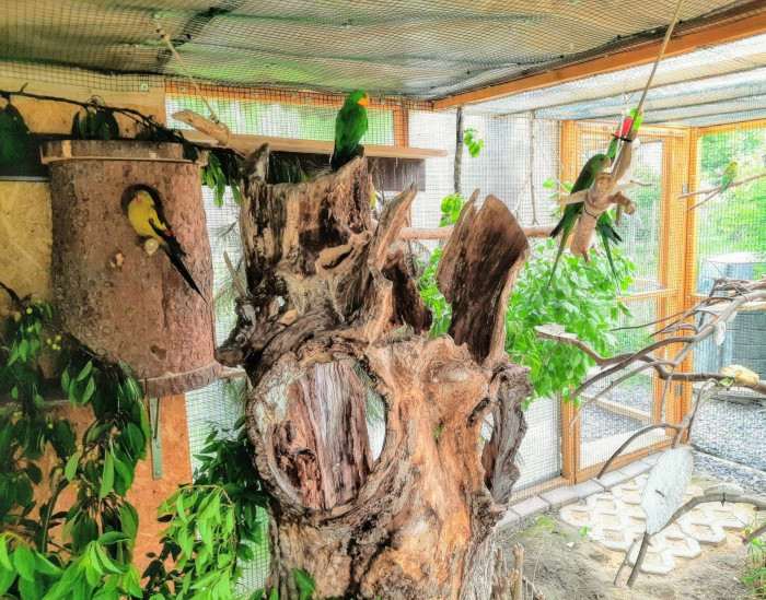 Zvláštní, obvykle to bývá tak že chovatel touží po určitém druhu a následně se snaží vytvořit co nejoptimálnější podmínky pro chov. Zde mě to připadá stejné jako když postavíte třeba chlév a teprve potom přemýšlíte jestli tam vrazíte žirafy nebo králíky, nehledě na jejich specifické potřeby. Obávám se že konstrukce a provedení voliéry pro andulky, byť velice slušných rozměrů, se bude "kapku" lišit od provedení pro papoušky kakadu. No nic, jen názor překvapeného laika. Třeba to tak u ptáčkařů funguje.