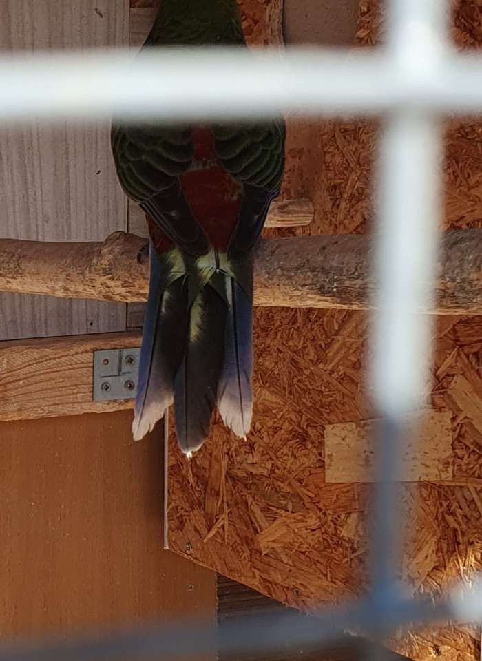 Na fotografii jde vidět souměrná linie zlomených ocasním brk, domnívám se že jde stresové peří. Nejčastěji jde vidět na ocasu. Všimnete si, že je to zhruba ve stejné vzdálenosti, že tam pravděpodobně bylo zeslabeni, tzv. stressline, to vzniká během růstu, když v oběhu kolísá hladina bílkovin. Pak se to časem zlomí.