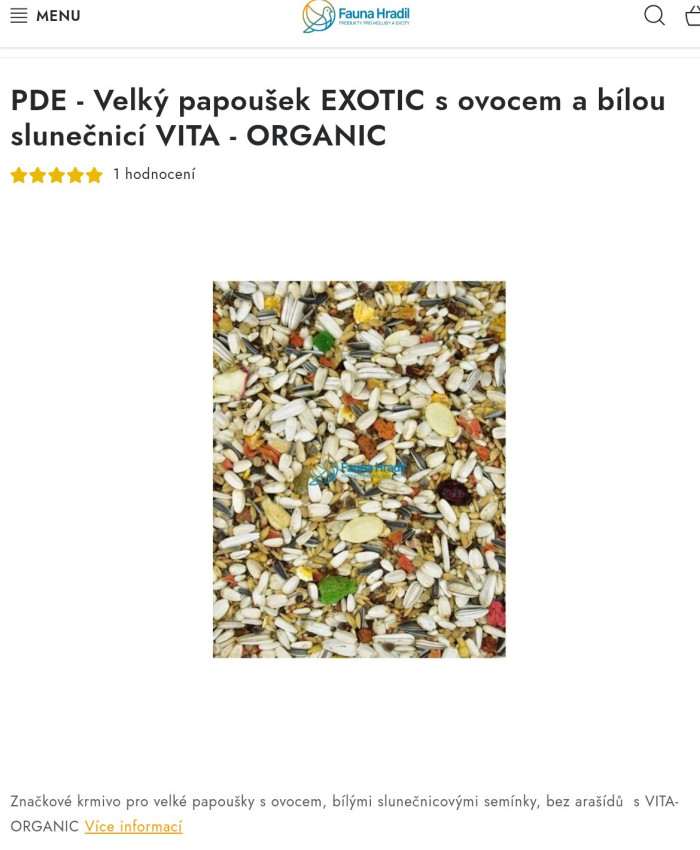 16000 KčDobrý den. Samec žako má akutní respirační problém, včera testy u veterináře na bakterie a plísně, výsledky budou zítra (pátek), dle veterináře to zcela jistě bude jedna z těchto příčin. Podezření na zdroj nákazy z krmiva. Od různých dodavatelů buď plíseň v zrní nebo broučci. Pokud toto objevíme, celé balení vyhazujeme , ale jistota není.. Vyzkoušeli jsme více dodavatelů, i tzv prestižních. Prosím o radu, jestli by mohlo pomoci preventivní ozáření zrní UV-C lampou. Případně postup nebo máte-li jinou radu. Děkuji.