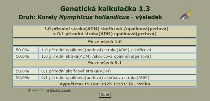 Vaši samci budou pouze přírodní straky a na skořici a perlovou pouze štěpitelní...