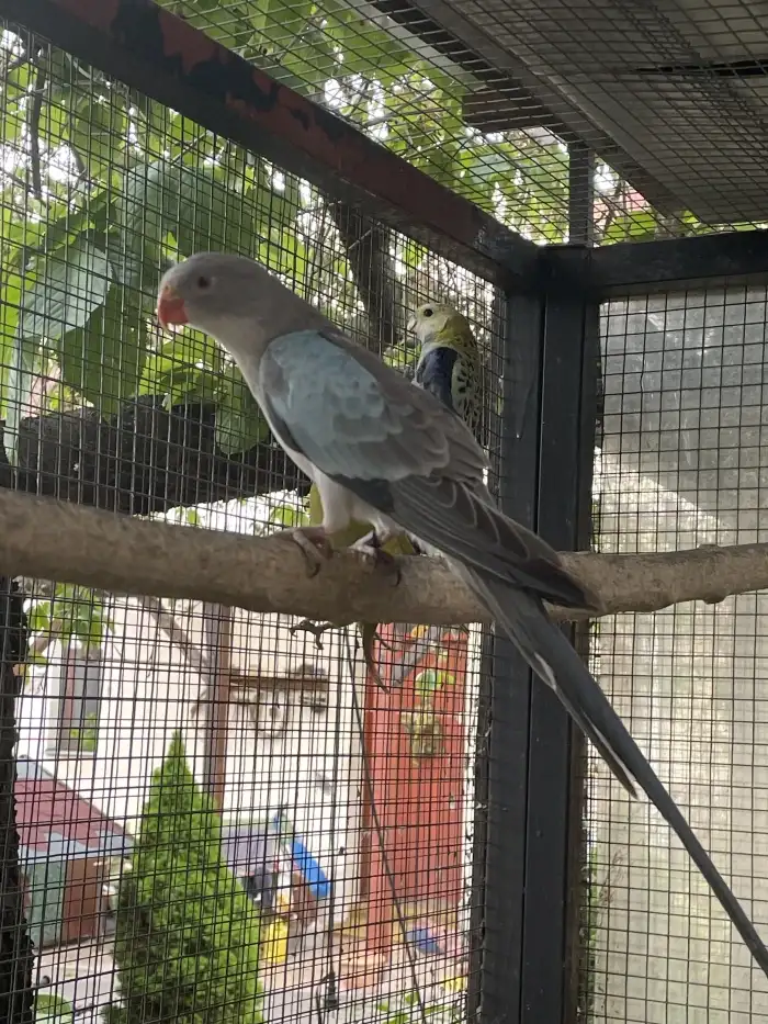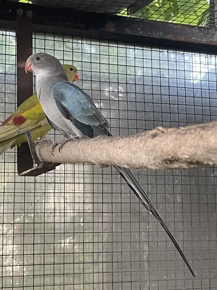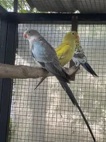 Prodám Papouška Alexandřina - samička žlutá 2025 a samička bílá 2024, z prostorné venkovní voliéry, Velké Němčice