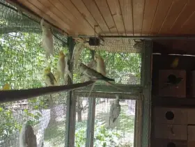 Prodám Korelu bělohlavou - 0,2 korela albino a korela bělohlavá perlová. 2025 bez kroužku. Z venkovní voliéry