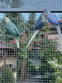 Prodám Alexandra malého - Prodám Alexandry malé dvě albína a dva modré Alexandry, vše mám kroužkované, pak taky letošní rosely pestré a andulky, cena dohodou.