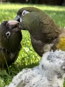 Prodám Papouška patagonského - Prodám letošní kroužkovaný odchov papoušků patagonských 2,2 pohlaví určeno DNA