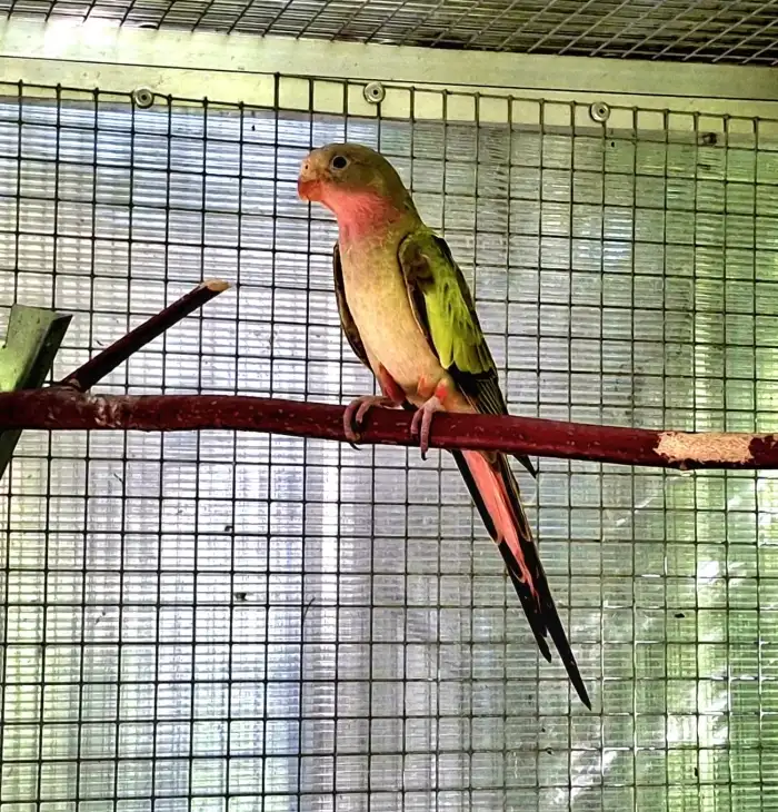 Prodám Papouška Alexandřina albino - Nabízím dva samečky -nepříbuzné k sobě, mohu dopárovat se žlutými pastely. Celoroční voliéra, krásní rodiče. 728 890 096 Na foto chovný samec!!