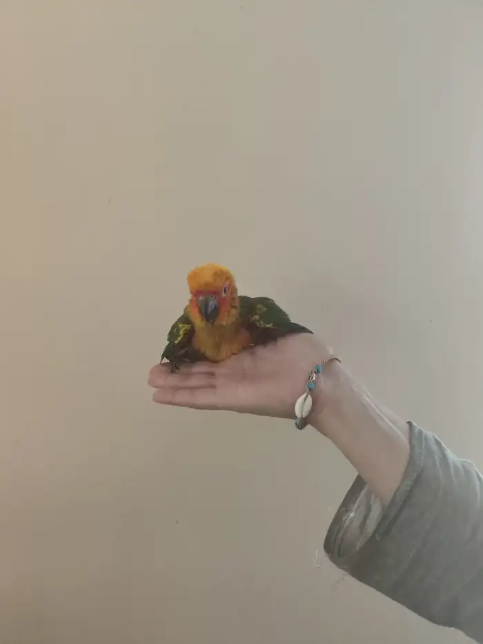 Prodám Aratinga slunečního - Prodám letošní 1,0 aratinga sluneční,ručně dokrmená.Tel.777247875