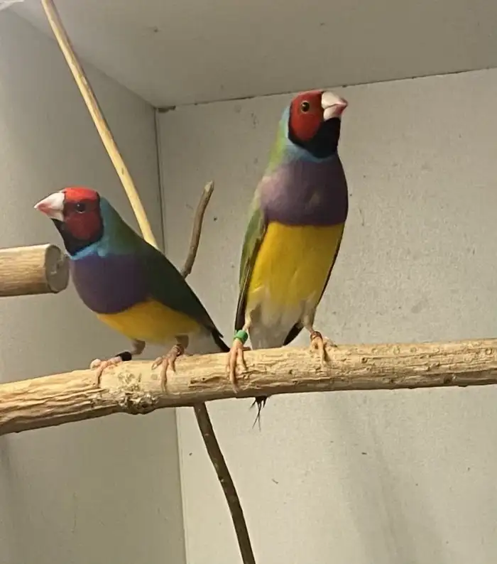 Prodám Amadinu Gouldové - Prodám odchov amadiny Gouldové. Přírodní 500Kč/kus.Možnost sestavení nepříbuzných párů. Kroužkovaný chov. 724 007 299