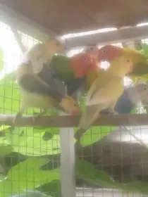 Prodám Agapornise Fišerova - Dobrý den, nabízím k prodeji pět letošních Agapornisů Fischeri. Plně samostatní, z budky jsou tři týdny. Bez určení pohlaví, všichni z jednoho hnízda. Otec přírodní zelen...