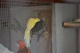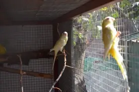 Prodám Papouška zpěvavého - Prodám 2,0 papoušek zpěvavý lutino oranž/rubino. Příbuzní, jedno hnízdo s DNA letošní kroužek.Na Poslední fotce jsou rodiče. Pouze volat 723 267 729