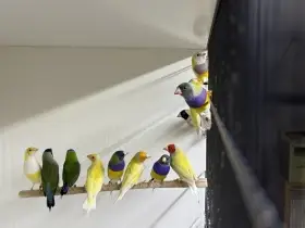 Prodám Amadinu Gouldové - Prodám odchov amadiny Gouldové. Přírodní 500Kč/kus.Možnost sestavení nepříbuzných párů. Kroužkovaný chov. 724 007 299
