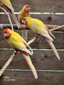Prodám Roselu pestrou lutino - Dobrý den, prodám pár rosely pestré, věk jeden rok, kroužkovaný. Cenu bych viděl 1000kc/pár. Můžete volat na 720130454 a nebo emailem dyrsmidp@seznam.cz