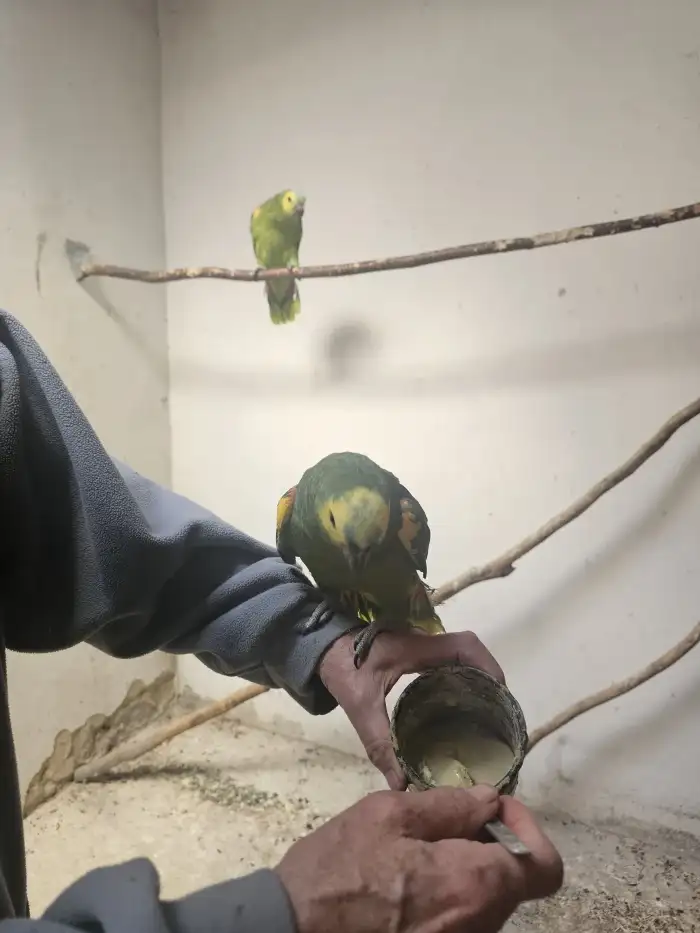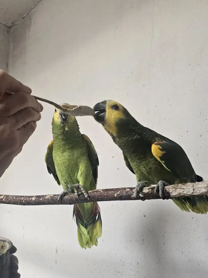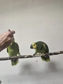 Prodám Amazoňana modročelého - Amazoňan modročelý 2samci, stáří 7/25 ručně dokrmené, krotké z vlastního chovu, pohlaví určeno testem DNA, pevný kroužek Cena 7500,Kč Tel.602 562 101, 739 051 285