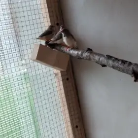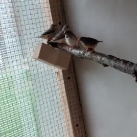 Prodám Zebřičku pestrou - Prodám tyto dvě slečny, jsou to ty s černými zobáčky. Za jednu 100,- kč, za obě 160,-. Jsou 14 dní vylétlé z hnízda.