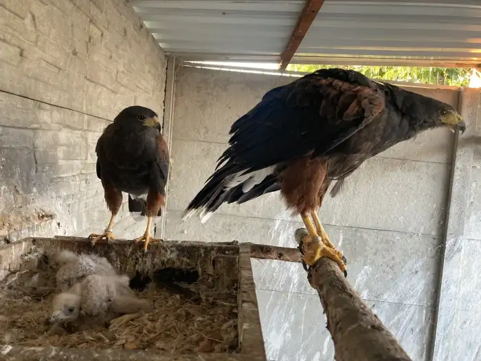 Prodám Káně Harrisovo - K dispozicii Kane Harrisova samica 14.8.2025 a samec 16.3.2025. Odchovany rodicmi. Samica 500€ samec 300€