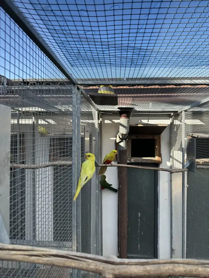 Prodám Papouška královského - Prodám 5,0 kr.25, bez vady, z venkovní voliéry. Předání osobně nebo burza Přerov, Kroměříž