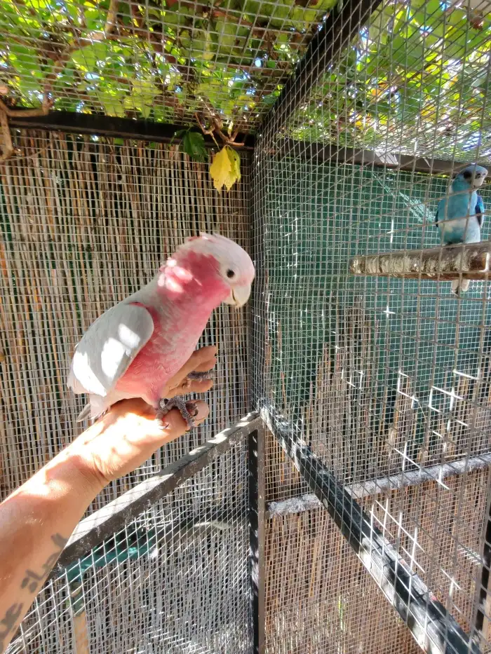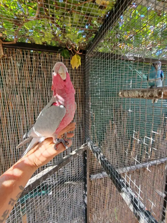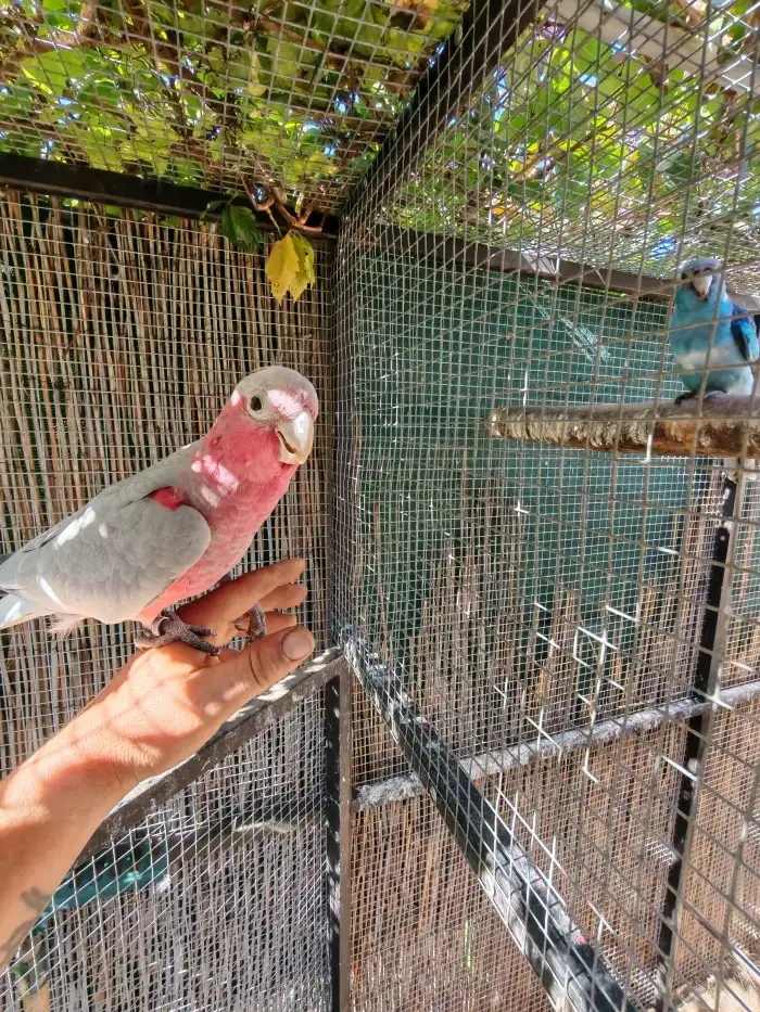 Prodám Kakadu růžového - Prodám 1,2 kakadu růžový 2025. Letošní odchov, z celoročních volier, odchov pod rodiči, DNA, sestavím nepříbuzný pár.