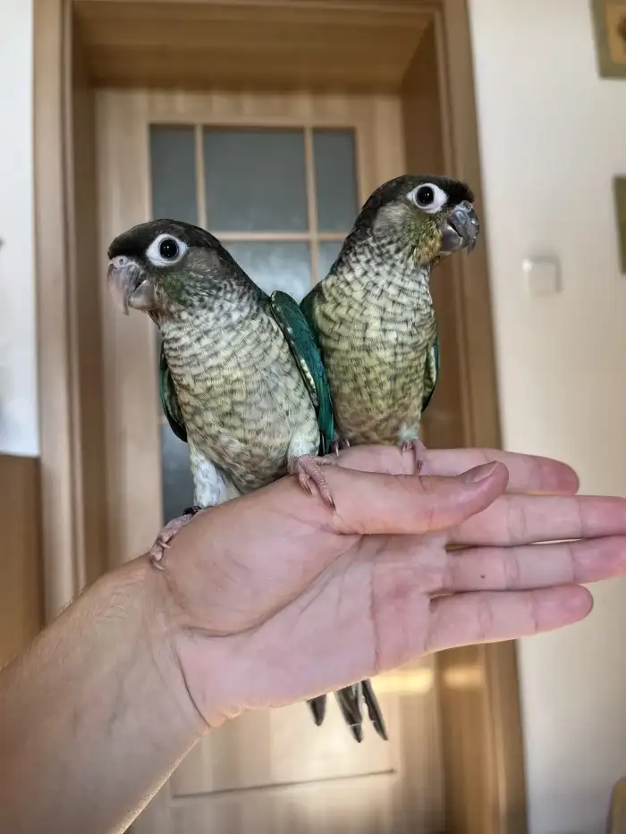 Prodám Pyruru zelenolícího - Nabízím k prodeji poslední 2,0 Pyrrhura molinae, pevný kroužek 2025, zbarvení wt, odchov pod rodiči, s DNA.