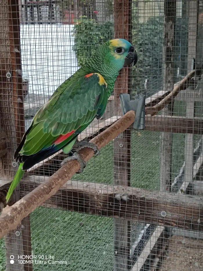 Prodám Amazoňana modročelého - Prodám 2ks amozoňan modročelý pod rodiči a 1 ks ručně dokrmený. Žerou již sami. Vylíhnutý červen Cena dohodou